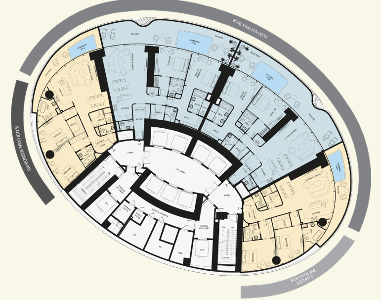 Strategically positioned within Downtown Dubai, the tower offers breathtaking, unobstructed views of the Burj Khalifa, while placing residents just steps away from Dubai Mall, the Museum of the Future, and the city’s most dynamic lifestyle destinations. Every unit boasts a soaring ceiling height of 4.2 meters and is equipped with a private pool — offering a rare blend of spaciousness, serenity, and personal indulgence.