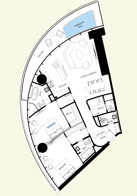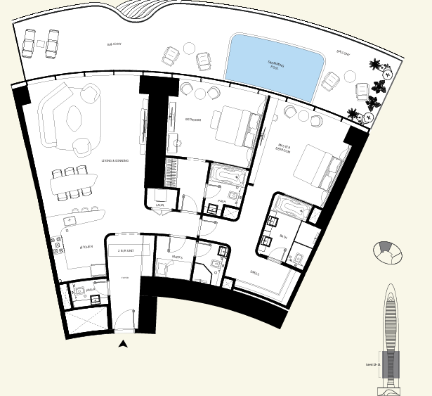 - Each residence includes its own private pool
