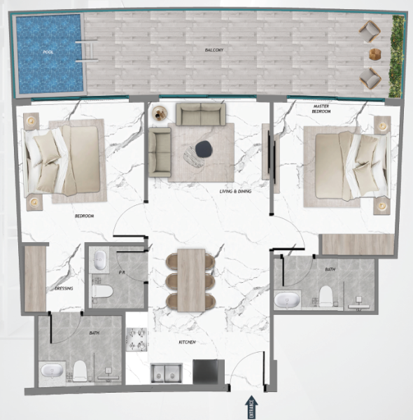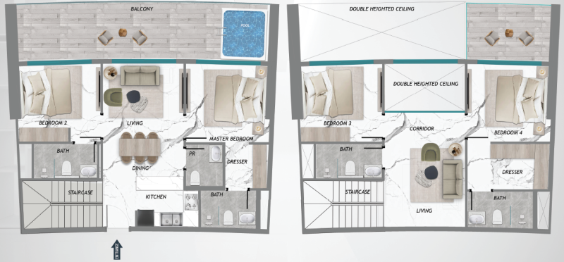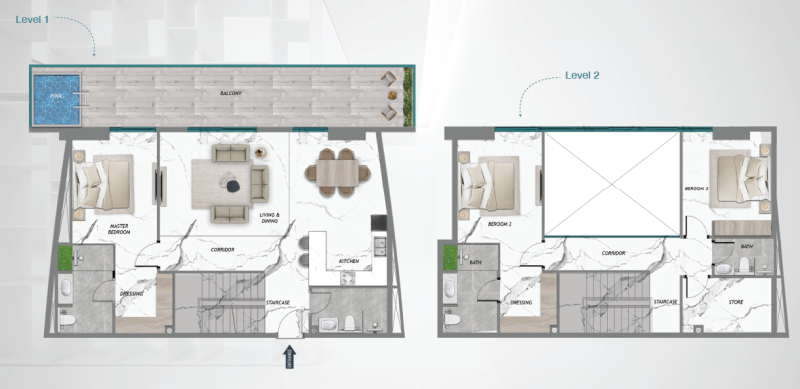 Set against a backdrop of landscaped gardens and open green spaces, the development features thoughtfully designed studios to 4-bedroom apartments — each equipped with a private pool, smart home systems, and European-grade interiors. Large floor-to-ceiling windows bring in abundant natural light and offer breathtaking views of the surrounding nature.