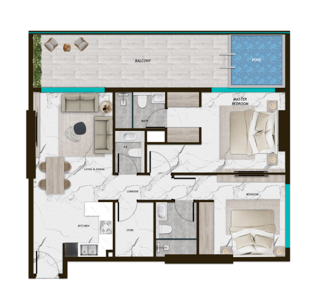 - Private Pool in Every Apartment – your personal oasis of peace and privacy